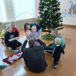 В канун Рождества наших воспитанников посетили волонтёры. Вместе с ребятами они играли в игры на знакомство и сближение, проводили импровизированное ток-шоу, слушали историю о возникновении праздника Рождества, мастерили из подручных материалов снеговичков. Конечно, наши детки не остались без подарков! А к большому количеству подарков ещё добавились сладкие угощения и фрукты. Все были рады и счастливы!