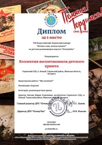 Воспитанники детского социального приюта приняли участие в XIII Всероссийском творческом конкурсе «Вечная слава, вечная память!» на детском развивающем портале «ПочемуЧка». В номинации «Поделки» была представлена работа «Мы помним!». Работа коллектива воспитанников получила диплом за 1 место.