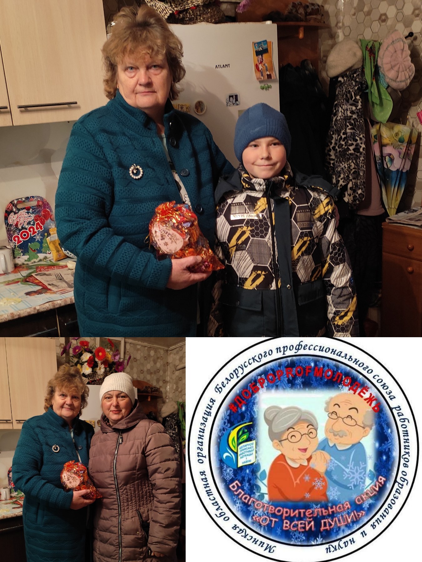 22.12.2023. Председатель ППО приняла участие в республиканской акции для пожилых людей «От всей души». Совместно с воспитанниками приюта поздравили ветеранов педагогического труда с наступающим Новым годом. Мы подарили частичку своей души людям, которые особо нуждаются в поддержке и простом человеческом тепле.
