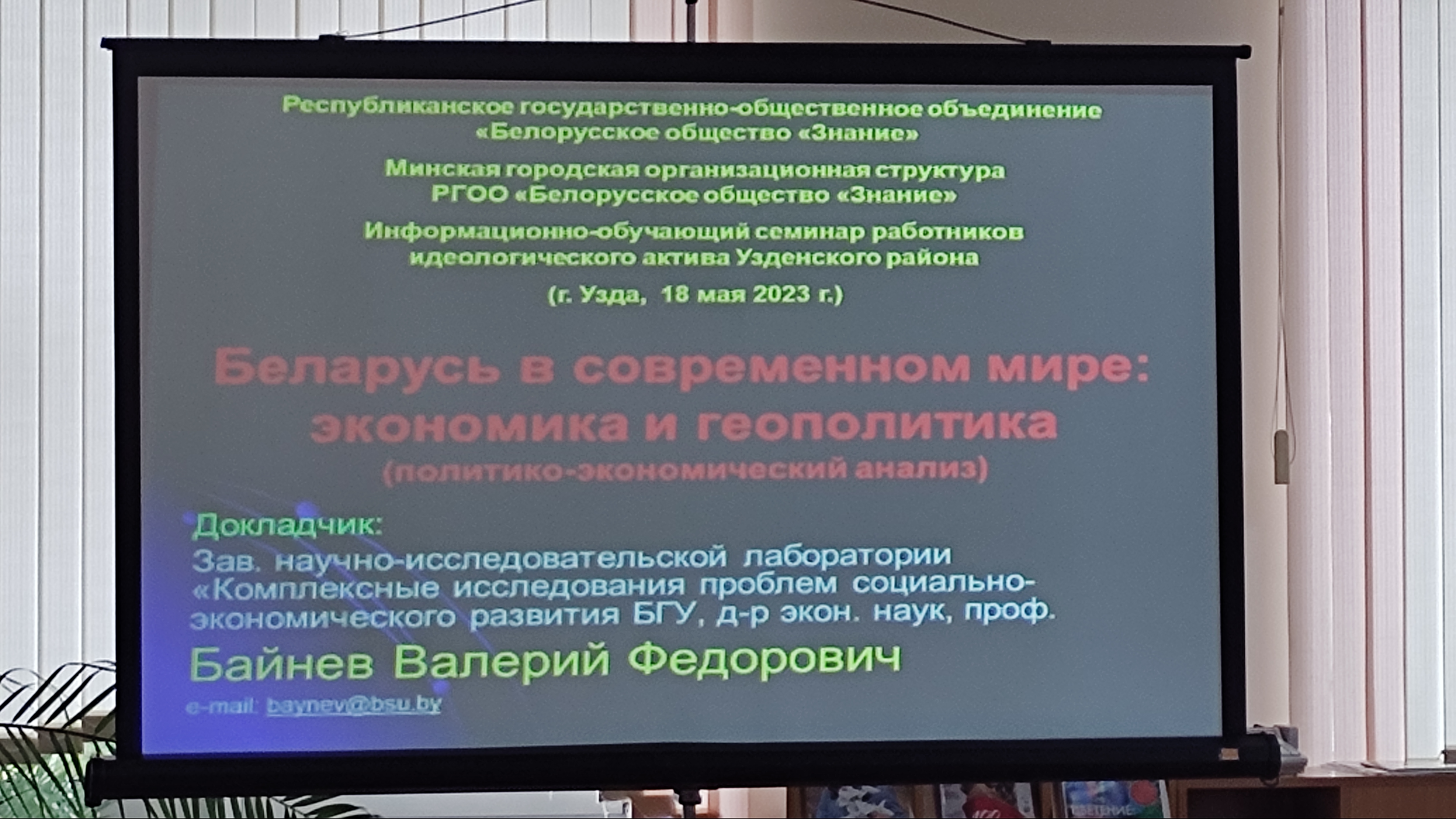 18.05.2023. С целью грамотного, профессионального понимания политическо- экономической ситуации в Республике Беларусь и мире на современном этапе и повышения квалификации, председатель первичной профсоюзной организации Дидковская О.В. посетила обучающий семинар «Беларусь в современном мире: экономика и геополитика». Докладчик: Байнев Валерий Федорович - политолог, доктор экономических наук, профессор БГУ.