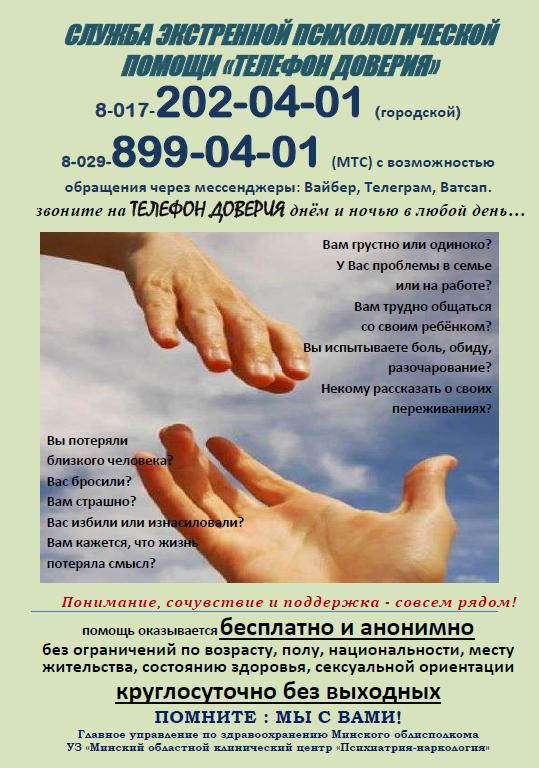 <address style="text-align: justify;">Контактные данные центра: г. Минск, ул. Чюрлениса, 3, (1 этаж общежития № 8 БГПУ). E-mail: rcpp@bspu.by. Телефон: +375173001006.</address> <address style="text-align: justify;"></address> <address style="text-align: justify;"></address>У каждого из нас бывают ситуации, в которых трудно разобраться. Иногда мы просто не знаем, КОМУ МОЖНО рассказать о своих проблемах!