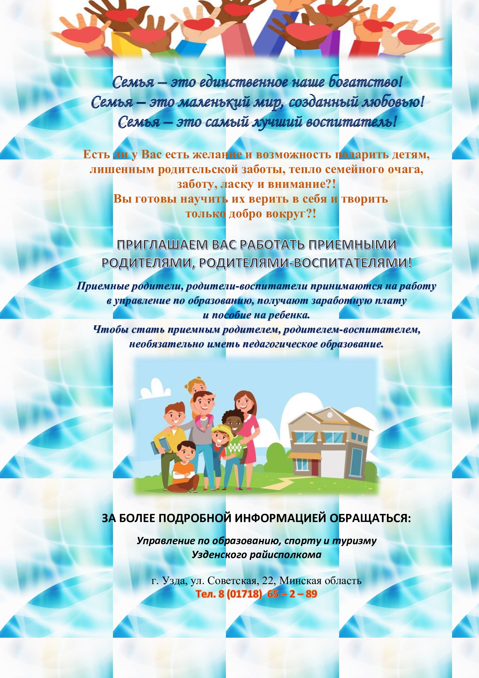 - ПРИГЛАШАЕМ ВАС РАБОТАТЬ ПРИЕМНЫМИ РОДИТЕЛЯМИ И РОДИТЕЛЯМИ-ВОСПИТАТЕЛЯМИ!